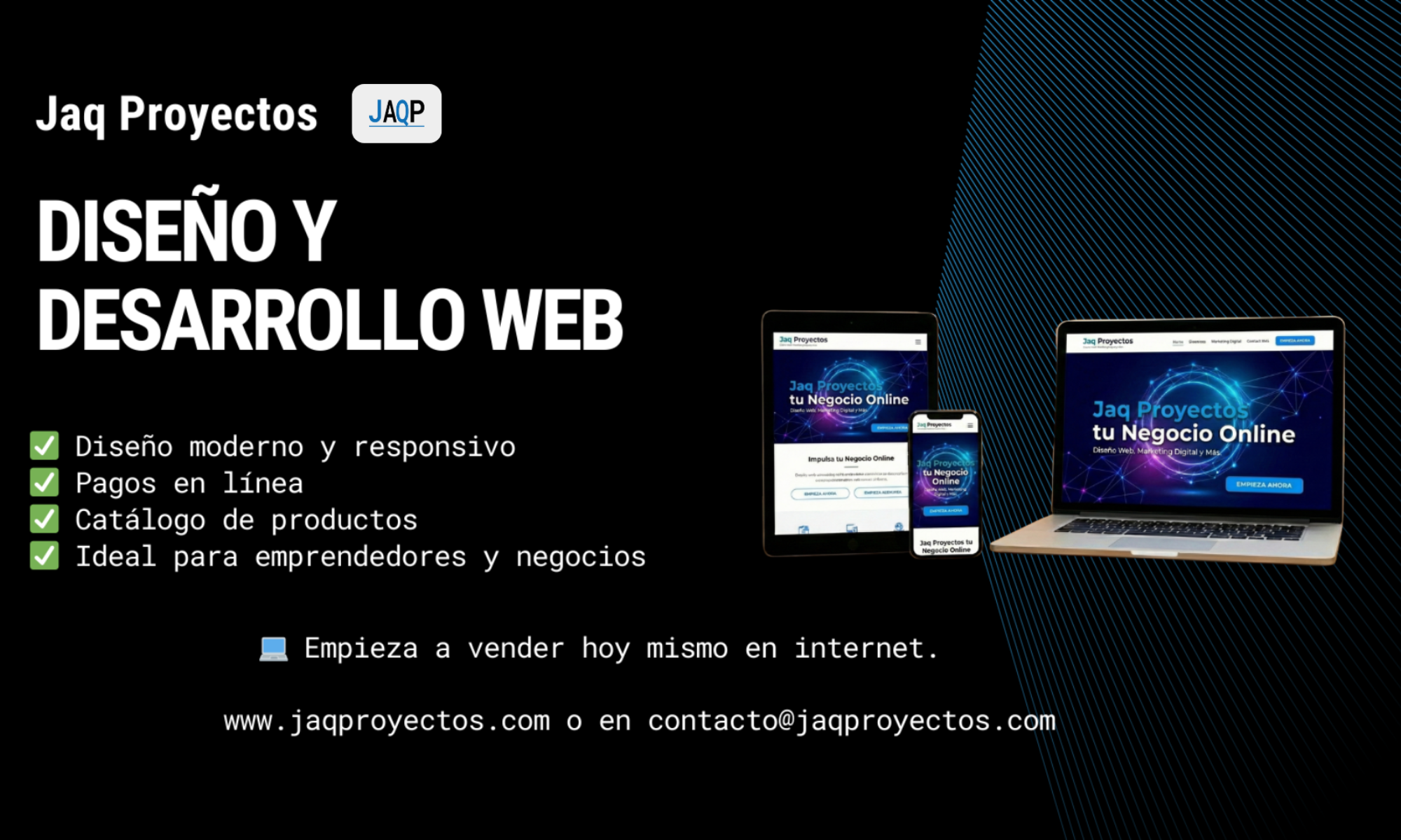 En jaq proyectos realizamos sitios web acorde a tus necesidades, de emprendedor o empresario